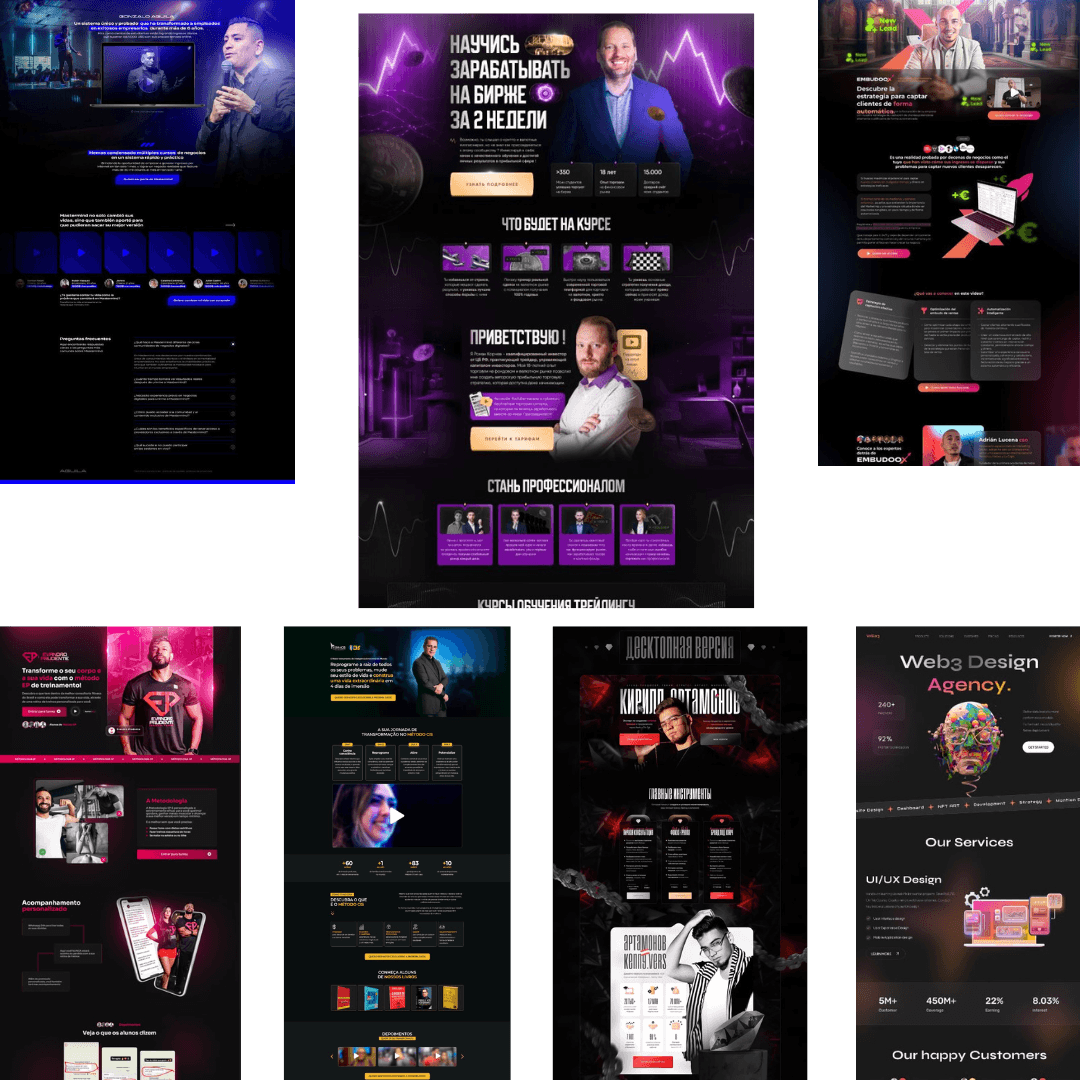 فانلز لبيع الكورسات & فانلز المنتجات الملوسة & فانلز لأخذ إيميلات & صفحة موقع & فانل الكلاينت ماجنيت، كذلك يوجد فانلز حقيقية أنشأناها سابقًا لبيع منتجات وخدمات لنا بشكل شخصي
